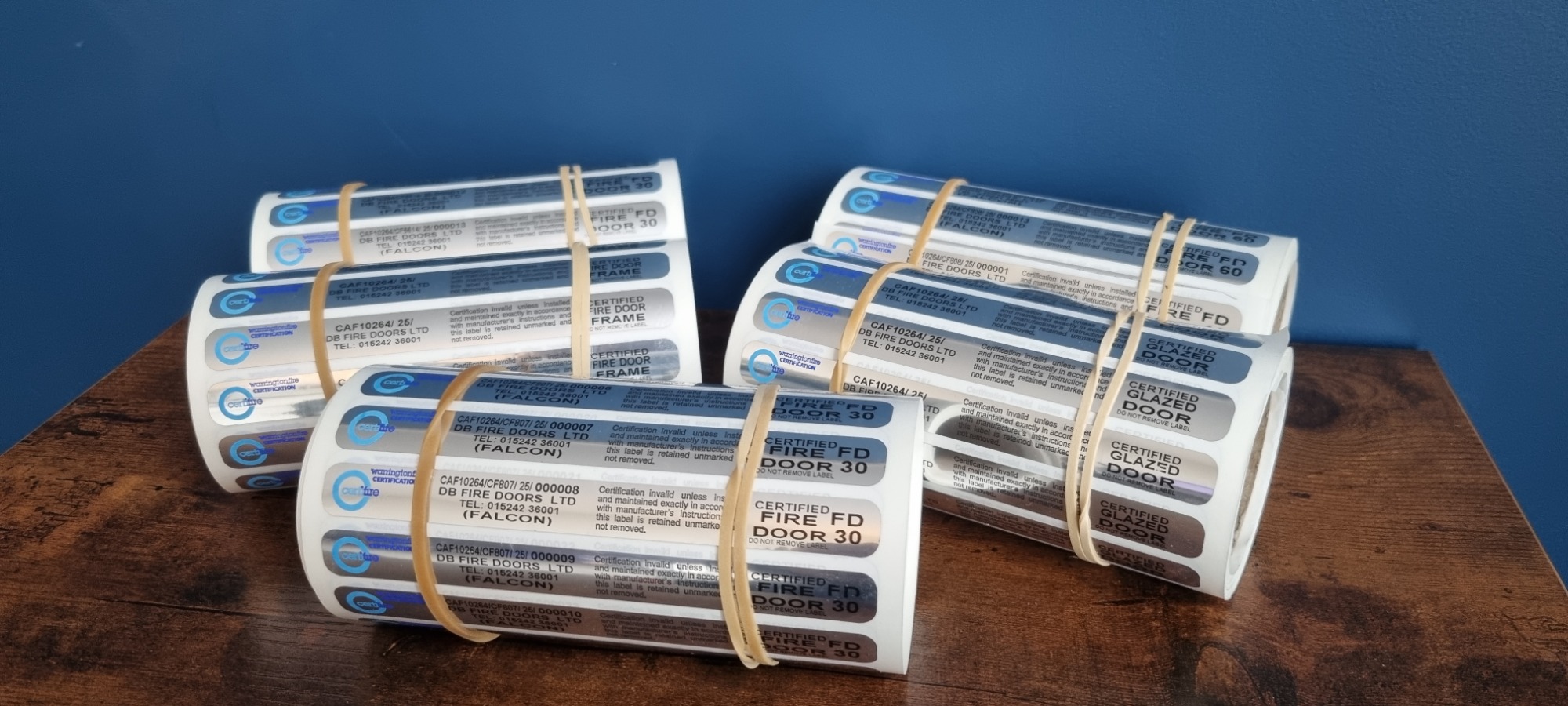 Tamper-evident label certifying the fire resistance and traceability of a Fire Doors Limited door set under the Certifire scheme