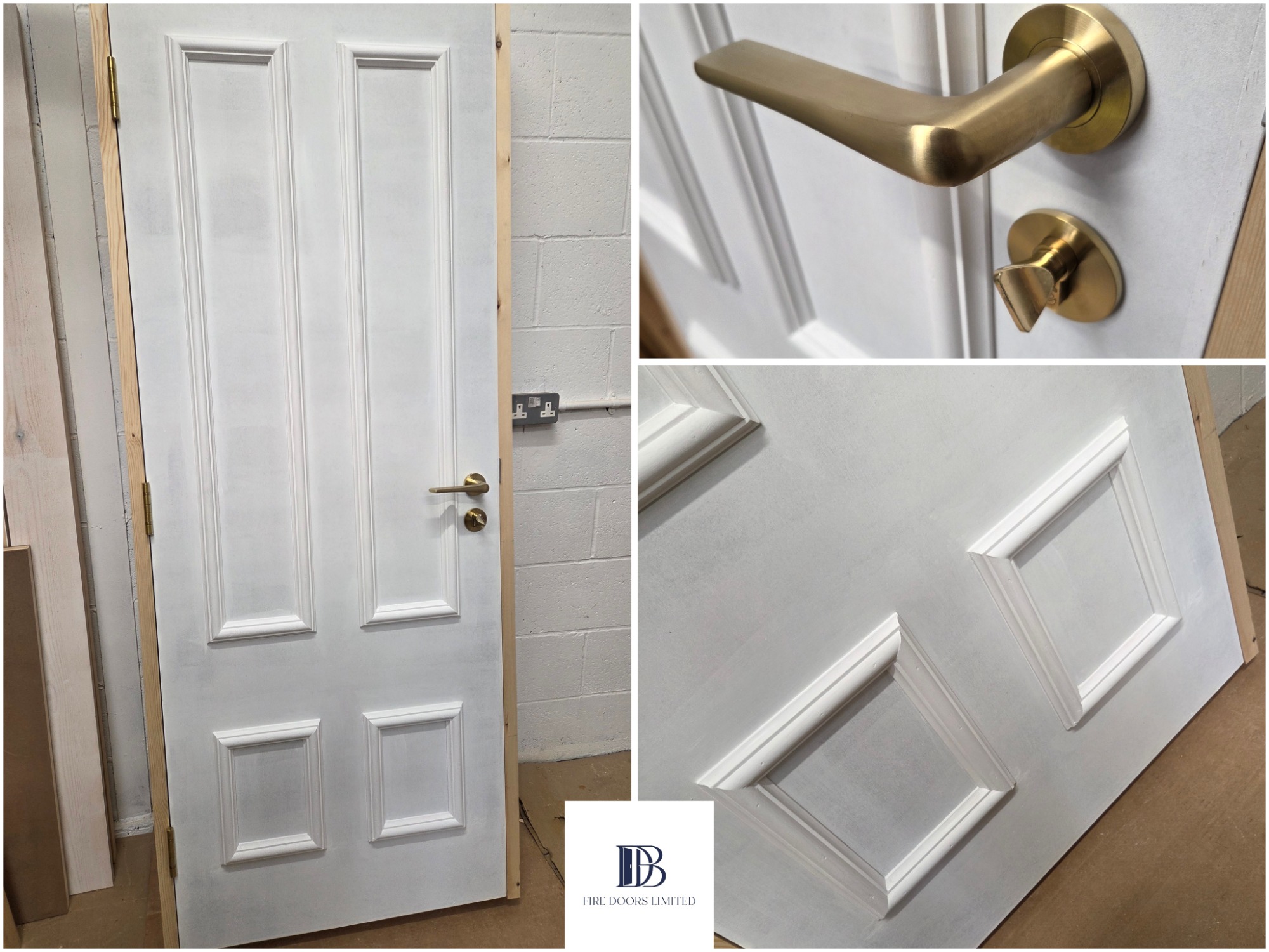 Showcase of face-fixed fire door construction. The perfect combination of traditional panel detail and contemporary luxury.